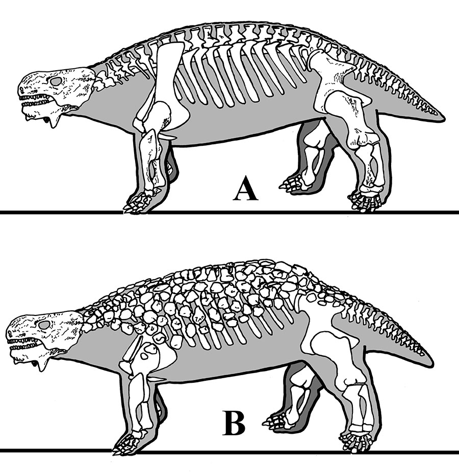 Pareiasaurus karpinskyi A) after GREGORY, 1946; B) modifed from GREGORY, 1946.