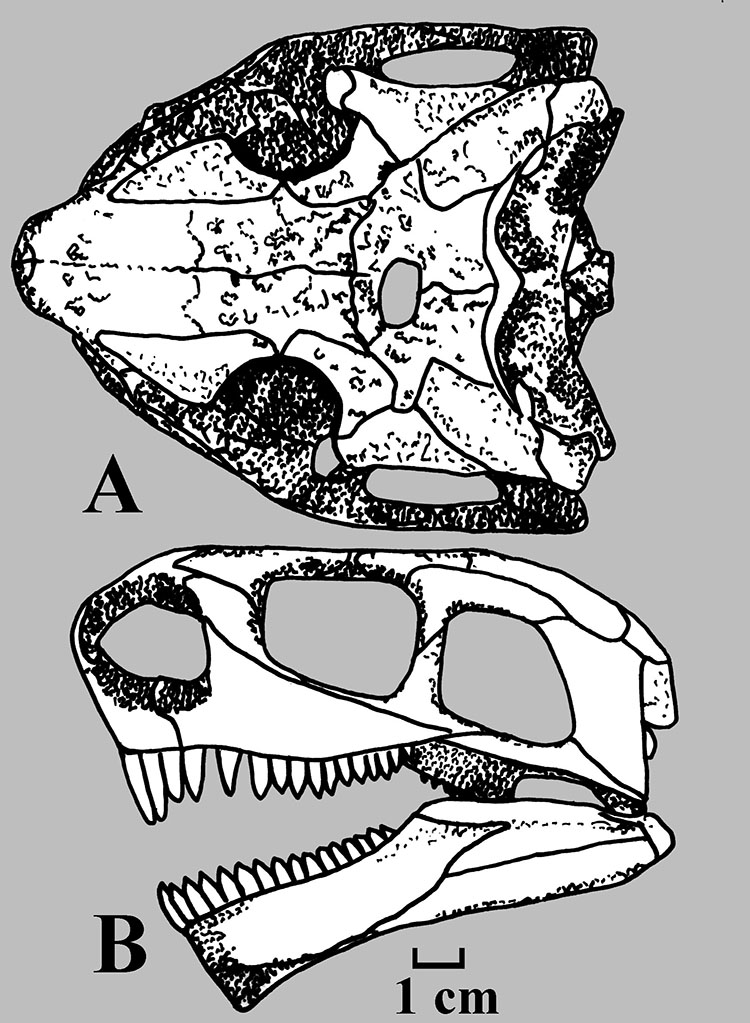 Cotylorhynchus romeri after Romer & Price, 1940: A) dorsal; and B) lateral.