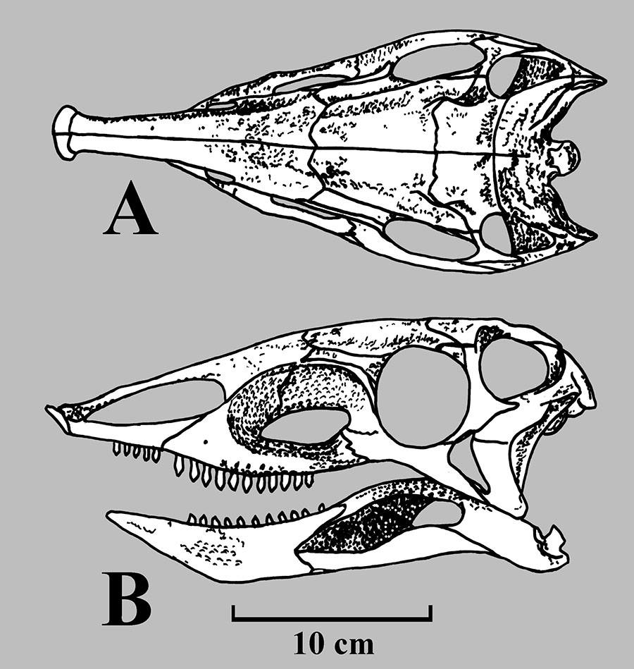 After WALKER, 1961: A) dorsal and B) left lateral views.