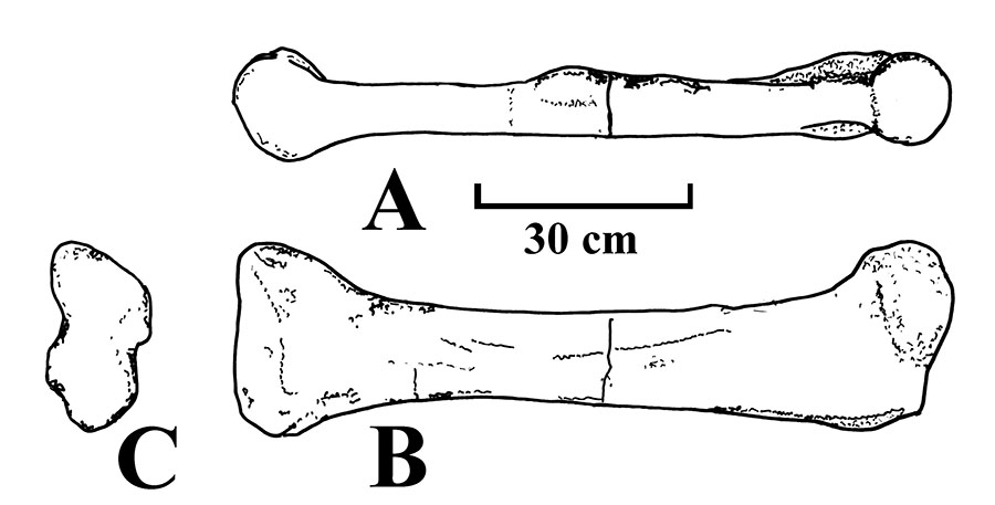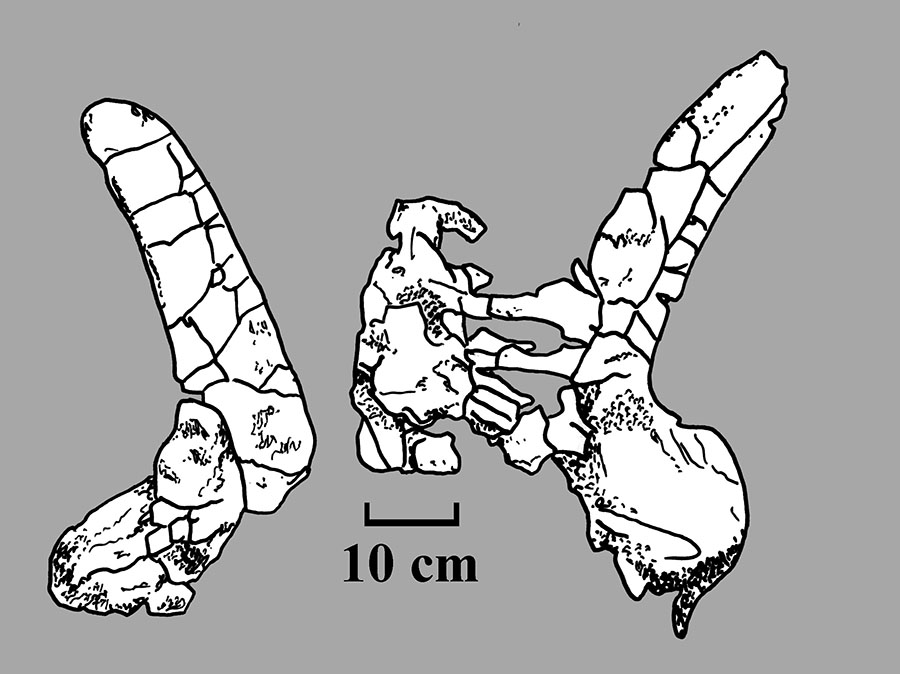 Material: Incomplete sacrum, ilia, left femur, right metatarsal III and phalanx of manus.