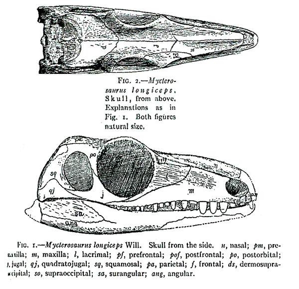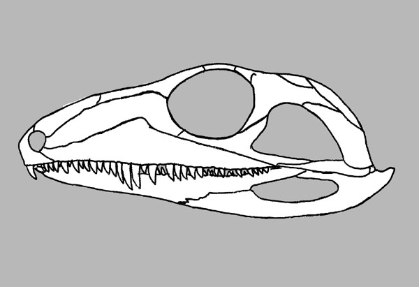 Material: Nearly complete skull, vertebral fragments, scapulocoracoid, proximal end of femur and distal end of femur.