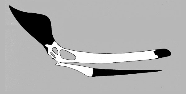 Material: Fragmentary skull, left coracoid, humerii, radii, ulnae, left metacarpal 4, femora and tibiae.