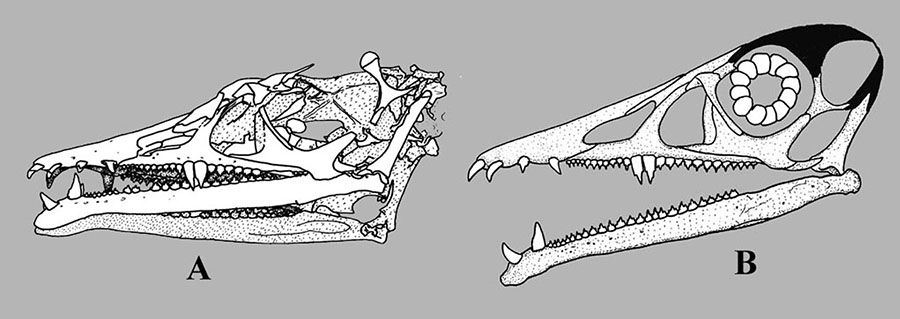 Eudimorphodon ranzii Holotype: MCSNB N. 2888; A) after Wild (1978); B) modified from Wild, (1978).