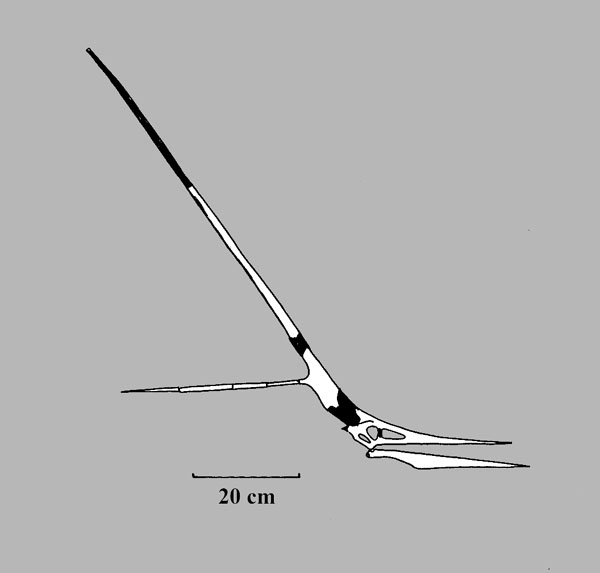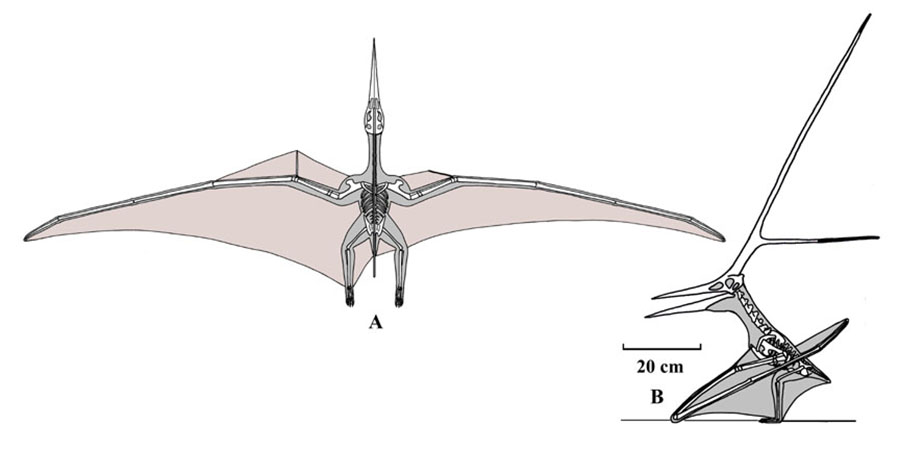 Nyctosaurus sp, new reconstruction; A) dorsal, and B) lateral views.