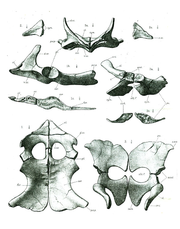 NHMUK PV (old BMNH ) R3538: A nearly complete and very slightly crushed shoulder-girdle of an adult.